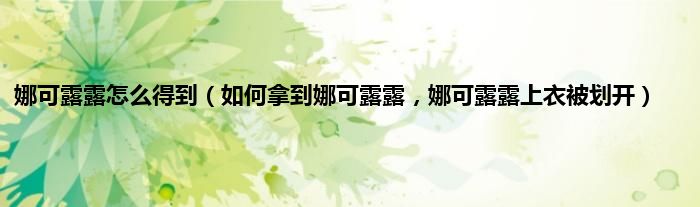 大家好,小常来为大家解答以上问题。娜可露露怎么得到,如何拿到娜可露露,娜可露露上衣被划开很多人还不知道,现在让我们一起来看看吧!