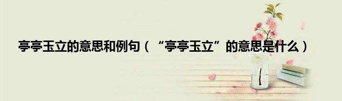 “亭亭玉立”的意思是说高高耸立着像碧玉一样的样子。“亭亭玉立”的“亭亭”的意思是高高耸立的样子或姿态。“亭亭玉立”多用来形容女子的体型,身体修长。或者是用来形容植物的外形挺拔。元代无名氏的《醉高歌带喜春来·咏玉簪花》曲:“禁苑中试看花开,谁似他幽闲洁白,亭亭玉立琱轩外。”意思是:幽静的宅院里试问有什么花开放的时候能够像不一样幽静,洁白,高高耸立在那里。清朝的沈复《浮生六记·闺房记乐》:“有女名憨园,瓜期未破,亭亭玉立,真‘一泓秋水照人寒’者也。”意思是:有一个女孩名字叫憨园,刚刚十五六还没有嫁人,身体修长,真的好像是秋水一样照的人寒凉呀。