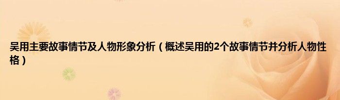 大家好,小常来为大家解答以上问题。吴用主要故事情节及人物形象分析,概述吴用的2个故事情节并分析人物性格很多人还不知道,现在让我们一起来看看吧!