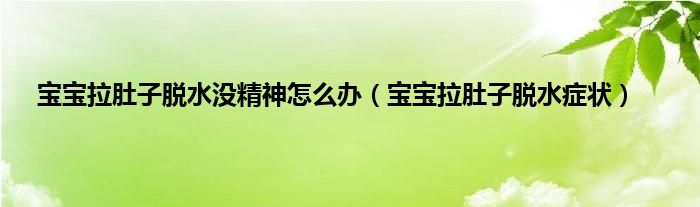 大家好,小科来为大家解答以上问题。宝宝拉肚子脱水没精神怎么办,宝宝拉肚子脱水症状很多人还不知道,现在让我们一起来看看吧!