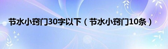 大家好,小常来为大家解答以上问题。节水小窍门30字以下,节水小窍门10条很多人还不知道,现在让我们一起来看看吧!