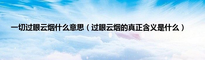 大家好,小常来为大家解答以上问题。一切过眼云烟什么意思,过眼云烟的真正含义是什么很多人还不知道,现在让我们一起来看看吧!