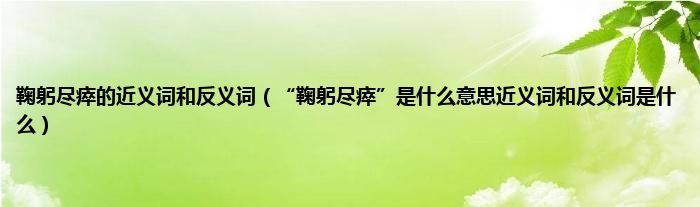 大家好,小常来为大家解答以上问题。鞠躬尽瘁的近义词和反义词,“鞠躬尽瘁”是什么意思近义词和反义词是什么很多人还不知道,现在让我们一起来看看吧!