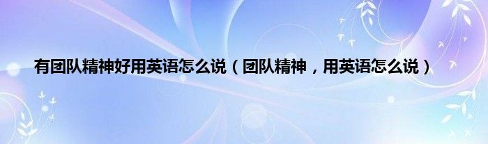 大家好,小常来为大家解答以上问题。有团队精神好用英语怎么说,团队精神,用英语怎么说很多人还不知道,现在让我们一起来看看吧!
