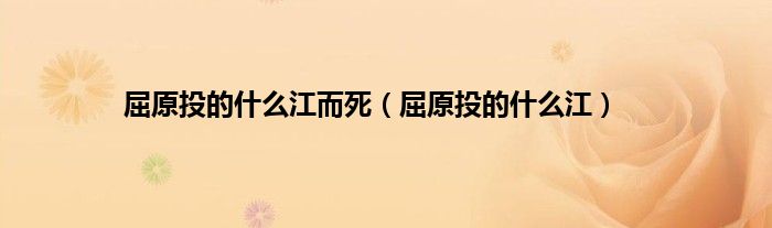 大家好,小常来为大家解答以上问题。屈原投的什么江而死,屈原投的什么江很多人还不知道,现在让我们一起来看看吧!