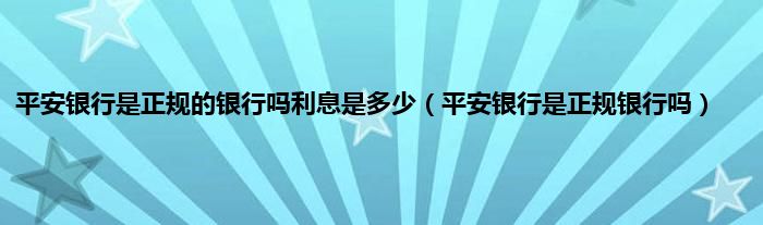 大家好,小常来为大家解答以上问题。平安银行是正规的银行吗利息是多少,平安银行是正规银行吗很多人还不知道,现在让我们一起来看看吧!