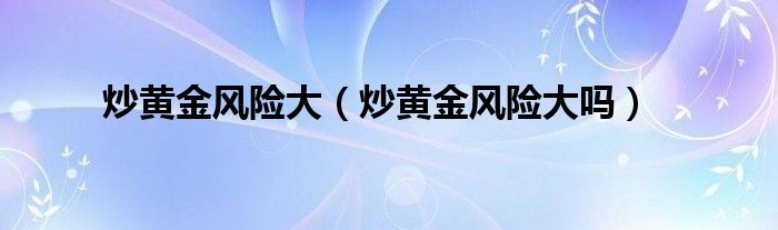 大家好,小常来为大家解答以上问题。炒黄金风险大,炒黄金风险大吗很多人还不知道,现在让我们一起来看看吧!