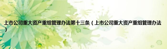 大家好,小常来为大家解答以上问题。上市公司重大资产重组管理办法第十三条,上市公司重大资产重组管理办法很多人还不知道,现在让我们一起来看看吧!