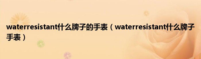 1、waterresistant不是手表的品牌,是防水的意思,手表上有这个词代表手表有防水的功能。防水手表可以分为普通防水和专业防水,使用非防水手表的时候,要避免直接接触水分,避免手表进水。