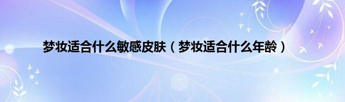 大家好,小科来为大家解答以上问题。梦妆适合什么敏感皮肤,梦妆适合什么年龄很多人还不知道,现在让我们一起来看看吧!