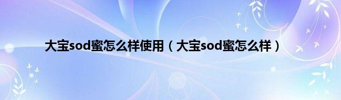 大家好,小科来为大家解答以上问题。大宝sod蜜怎么样使用,大宝sod蜜怎么样很多人还不知道,现在让我们一起来看看吧!