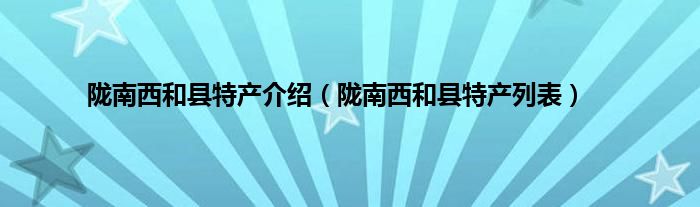 大家好,小常来为大家解答以上问题。陇南西和县特产介绍,陇南西和县特产列表很多人还不知道,现在让我们一起来看看吧!
