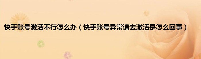 大家好,小常来为大家解答以上问题。快手账号激活不行怎么办,快手账号异常请去激活是怎么回事很多人还不知道,现在让我们一起来看看吧!