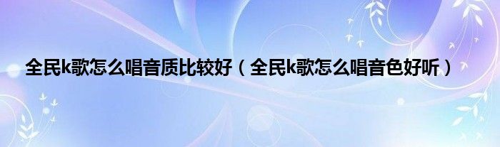 大家好,小常来为大家解答以上问题。全民k歌怎么唱音质比较好,全民k歌怎么唱音色好听很多人还不知道,现在让我们一起来看看吧!