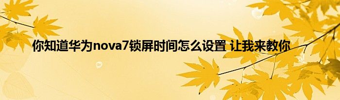 现在大家使用手机的频率越来越频繁,手机也为我们提供了许多的便利,今天小编也来说一下这个你知道华为nova7锁屏时间怎么设置 让我来教你相关的文章,这个操作其实不复杂,接下来就给大家介绍一下你知道华为nova7锁屏时间怎么设置 让我来教你,一起来看看吧: