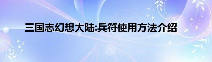 小编今天给各位玩家朋友们带来的是三国志幻想大陆:兵符使用方法介绍,有记得的玩家朋友吗?不记得也没有关系,小编已经帮助大家把三国志幻想大陆:兵符使用方法介绍找了出来,你只需要动动你的小手就可以轻松知道啦,快来瞧一瞧吧。