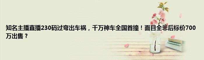 感谢你在百忙之中抽出时间阅读知名主播直播230码过弯出车祸,千万神车全国首撞!面目全非后标价700万出售?这篇文章。你觉得今天知名主播直播230码过弯出车祸,千万神车全国首撞!面目全非后标价700万出售?话题怎么样?关于知名主播直播230码过弯出车祸,千万神车全国首撞!面目全非后标价700万出售?这篇文章的任何评论都可以告诉我。你的每一个建议都是对小编辑的肯定和鼓舞。小编明天会继续给你带来更多的好内容。我希翼你不要错过。感谢支持哟!
