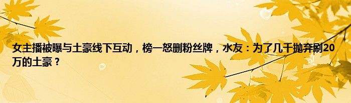 感谢你在百忙之中抽出时间阅读女主播被曝与土豪线下互动,榜一怒删粉丝牌,水友:为了几千抛弃刷20万的土豪?这篇文章。你觉得今天女主播被曝与土豪线下互动,榜一怒删粉丝牌,水友:为了几千抛弃刷20万的土豪?话题怎么样?关于女主播被曝与土豪线下互动,榜一怒删粉丝牌,水友:为了几千抛弃刷20万的土豪?这篇文章的任何评论都可以告诉我。你的每一个建议都是对小编辑的肯定和鼓舞。小编明天会继续给你带来更多的好内容。我希翼你不要错过。感谢支持哟!