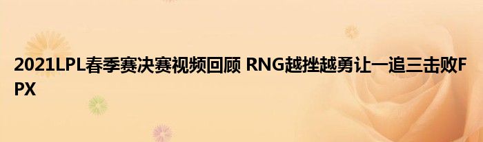 2021LPL春季赛总决赛已经正式落幕,这次RNG成功战胜FPX,在四强赛被FPX击败后,他们在败者组一路厮杀屡战屡胜,终于获得冠军。相信大家也都比较好奇这次精彩的总决赛,这里就带来了具体的比赛回忆,一起来看看吧。
