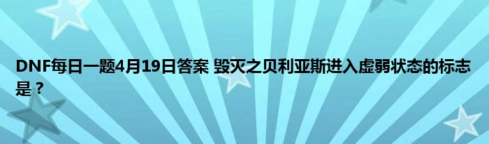 DNF每天都有每日一题,今天是4月19日,DNF微信公众号上每日一题活动的题目已经出来了,题目是毁灭之贝利亚斯进入虚弱状态的标志是什么?答对可赢取黑钻、抗疲劳药等奖励,答案是什么呢,下面就一起来尾随小编看看吧。
