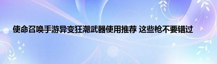 以上就是使命召唤手游异变狂潮枪械推举的全部内容,希翼对大家有所帮助。