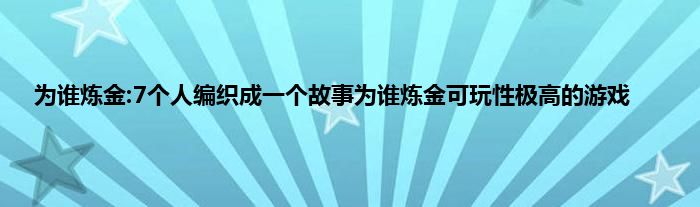 以上就是为谁炼金:7个人编织成一个故事为谁炼金可玩性极高的游戏的推荐,相信通过为谁炼金:7个人编织成一个故事为谁炼金可玩性极高的游戏这篇文章能帮到你,也欢迎对游戏很感兴趣小伙伴们一起来探讨。