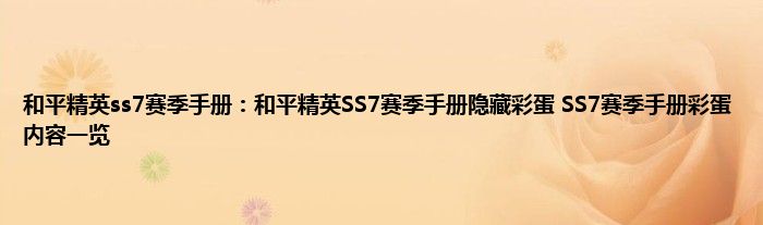 以上就是和平精英ss7赛季手册:和平精英SS7赛季手册隐藏彩蛋,SS7赛季手册彩蛋内容一览的推荐,相信通过和平精英ss7赛季手册:和平精英SS7赛季手册隐藏彩蛋,SS7赛季手册彩蛋内容一览这篇文章能帮到你,也欢迎对游戏很感兴趣小伙伴们一起来探讨。