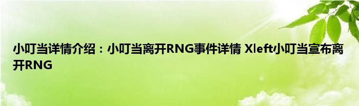 小叮当详情介绍:小叮当离开RNG事件详情Xleft小叮当宣布离开RNG