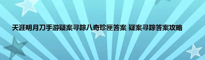 天涯明月刀手游有一个疑案寻踪八奇珍匣的活动,玩家需要找到疑案寻踪的答案,参考攻略可以快速的了解疑案寻踪八奇珍匣的答案,很多玩家不知道答案是什么,小编收集了一份详细的答案,下面就来尾随小编一起来看一下吧。