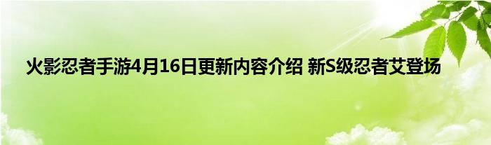 火影忍者手游将在4月16日进行更新,这次更新带来了很多的新内容,其中包括了新的S级忍者艾,也就是第三代雷影,同时还带来了新的活动以及任务,新的充消奖励等等,下面就来尾随小编一起来看一下详细的更新内容介绍吧。