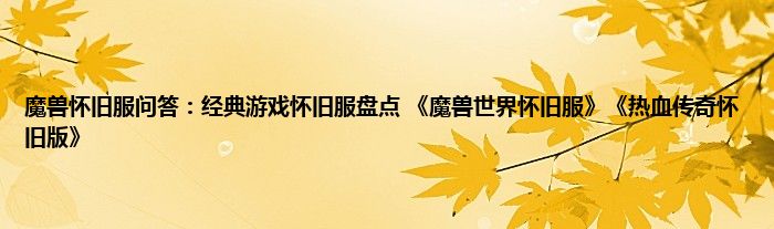 小编今天给各位玩家朋友们带来的是魔兽怀旧服问答:经典游戏怀旧服盘点 《魔兽世界怀旧服》《热血传奇怀旧版》,有记得的玩家朋友吗?不记得也没有关系,小编已经帮助大家把魔兽怀旧服问答:经典游戏怀旧服盘点 《魔兽世界怀旧服》《热血传奇怀旧版》找了出来,你只需要动动你的小手就可以轻松知道啦,快来瞧一瞧吧。