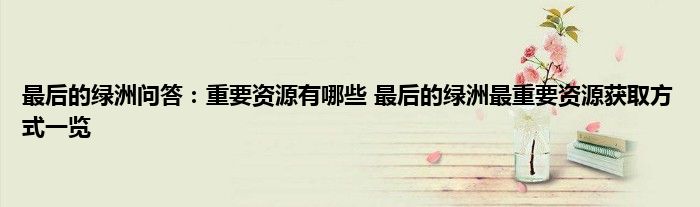 小编今天给各位玩家朋友们带来的是最后的绿洲问答:重要资源有哪些,最后的绿洲最重要资源获取方式一览,有记得的玩家朋友吗?不记得也没有关系,小编已经帮助大家把最后的绿洲问答:重要资源有哪些,最后的绿洲最重要资源获取方式一览找了出来,你只需要动动你的小手就可以轻松知道啦,快来瞧一瞧吧。