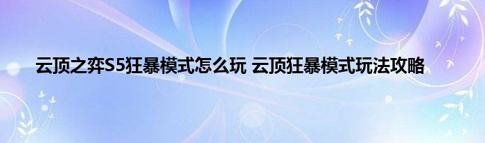 以上就是今天给小伙伴们带来的云顶之弈狂暴模式玩法介绍,希翼大家喜欢。