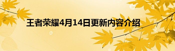 王者荣耀4月14日更新内容介绍