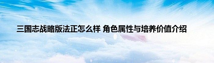 三国志战略版游戏当中出了很多的决赛供玩家们来培养,如果你想要让自己的阵营发挥出更好的实力话,就需要将你的英雄搭配好。其中法正在游戏里面就是一个比较厉害的角色了,很多玩家都不知道的法正到底值不值得培养,那下面就让小编给玩家们带来这个角色的培养价值的分析。