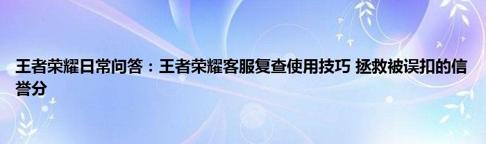 以上就是王者荣耀日常问答:王者荣耀客服复查使用技巧,拯救被误扣的信誉分的推荐,相信通过王者荣耀日常问答:王者荣耀客服复查使用技巧,拯救被误扣的信誉分这篇文章能帮到你,也欢迎对游戏很感兴趣小伙伴们一起来探讨。