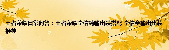 今天来聊聊关于王者荣耀日常问答:王者荣耀李信纯输出装搭配,李信全输出出装推荐的文章,游戏是很多人的选择,但是游戏玩多了也会身心疲惫,现在就为大家来简单介绍下王者荣耀日常问答:王者荣耀李信纯输出装搭配,李信全输出出装推荐,希望对各位小伙伴们有所帮助。