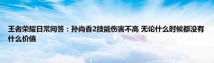 今天来聊聊关于王者荣耀日常问答:孙尚香2技能伤害不高,无论什么时候都没有什么价值的文章,游戏是很多人的选择,但是游戏玩多了也会身心疲惫,现在就为大家来简单介绍下王者荣耀日常问答:孙尚香2技能伤害不高,无论什么时候都没有什么价值,希望对各位小伙伴们有所帮助。