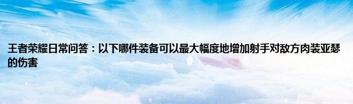 今天来聊聊关于王者荣耀日常问答:以下哪件装备可以最大幅度地增加射手对敌方肉装亚瑟的伤害的文章,游戏是很多人的选择,但是游戏玩多了也会身心疲惫,现在就为大家来简单介绍下王者荣耀日常问答:以下哪件装备可以最大幅度地增加射手对敌方肉装亚瑟的伤害,希望对各位小伙伴们有所帮助。