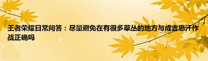 以上就是王者荣耀日常问答:尽量避免在有很多草丛的地方与成吉思汗作战正确吗的推荐,相信通过王者荣耀日常问答:尽量避免在有很多草丛的地方与成吉思汗作战正确吗这篇文章能帮到你,也欢迎对游戏很感兴趣小伙伴们一起来探讨。
