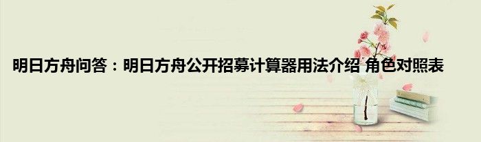 今天来聊聊关于明日方舟问答:明日方舟公开招募计算器用法介绍,角色对照表的文章,游戏是很多人的选择,但是游戏玩多了也会身心疲惫,现在就为大家来简单介绍下明日方舟问答:明日方舟公开招募计算器用法介绍,角色对照表,希望对各位小伙伴们有所帮助。