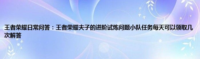 以上就是王者荣耀日常问答:王者荣耀夫子的进阶试炼问题小队任务每天可以领取几次解答的推荐,相信通过王者荣耀日常问答:王者荣耀夫子的进阶试炼问题小队任务每天可以领取几次解答这篇文章能帮到你,也欢迎对游戏很感兴趣小伙伴们一起来探讨。