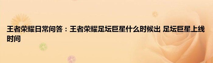 王者荣耀日常问答:王者荣耀足坛巨星什么时候出 足坛巨星上线时间