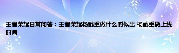 王者荣耀日常问答:王者荣耀杨戬重做什么时候出 杨戬重做上线时间