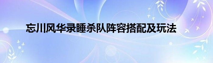 忘川风华录这个游戏中,阵容十分重要,那么,什么阵容比较厉害呢,睡杀队阵容怎么搭配?在忘川风华录中玩家可以随意搭配阵容进行战斗,其中睡杀队阵容很多玩家不会搭配,那么想知道的就和小编一起来看看吧。