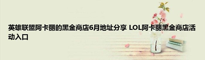 英雄联盟每月都有一个黑金商店的活动,这次的阿卡丽的黑金商店6月活动地址已经出来了,很多玩家不知道活动地址在哪里,参与活动可以获得很多奖励,下面就来尾随小编一起来看看阿卡丽黑金商店的活动地址吧。