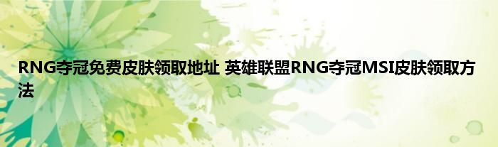 RNG夺冠MSI之后,官方也开启了一系列活动和奖励,其中有一个免费皮肤领取的活动奖励,很多玩家不知道免费皮肤要怎么领取,去哪里领取,小编收集了有关攻略,下面就来跟着小编一起来看看详细的领取方式。