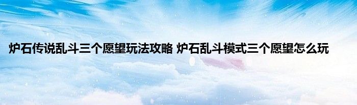 炉石传说今天乱斗模式有更新,今天的乱斗模式是三个愿望,玩家不用组牌,选择职业后会获得一套随机的套牌和一张愿望牌,愿望牌一共可以使用三次。这次的乱斗不用组牌,但是怎么玩呢,小编收集了一份攻略,下面就来跟着小编一起来看看吧。