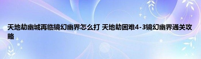 天地劫幽城再临镜幻幽界怎么打 ?天地劫手游中剧情完成后,会解锁相应的困难难度关卡,很多玩家卡在了镜幻幽界的4-3困难关卡不会打,这个关卡难度还是有点高的,需要一定的操作技巧和阵容强度,下面一起来看看具体该怎么打吧。