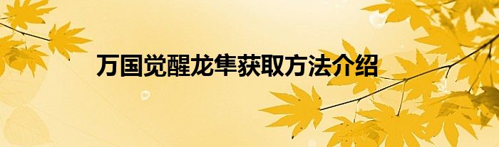 感谢你在百忙之中抽出时间阅读万国觉醒龙隼获取方法介绍这篇文章。你觉得今天万国觉醒龙隼获取方法介绍话题怎么样?关于万国觉醒龙隼获取方法介绍这篇文章的任何评论都可以告诉我。你的每一个建议都是对小编辑的肯定和鼓励。小编明天会继续给你带来更多的好内容。我希望你不要错过。感谢支持哟!